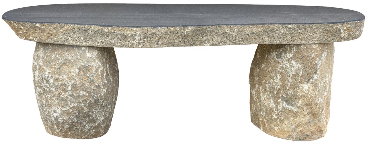 Táto čadičová lavica je vyrobená z robustných kusov prírodného čadiča – vulkanickej horniny známej svojou extrémnou tvrdosťou a tmavou farbou. Dodáva sa v troch masívnych dieloch (dve podnože a sedacia časť), čo uľahčuje manipuláciu a zabezpečuje jej výnimočnú stabilitu po zložení. Povrch sedacej časti je precízne vyleštený, čo zaisťuje hladký, príjemný dotyk a luxusný zrkadlový lesk. Čadič je mimoriadne odolný voči mrazu, UV žiareniu a opotrebovaniu, čo zaručuje jej dlhú životnosť prakticky bez údržby.