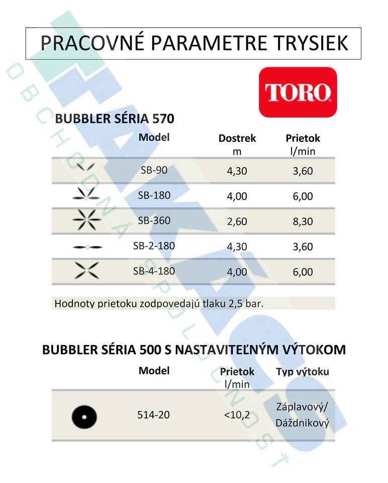 | Typ trysky | Stream Bubbler (Prúdový bubbler) |